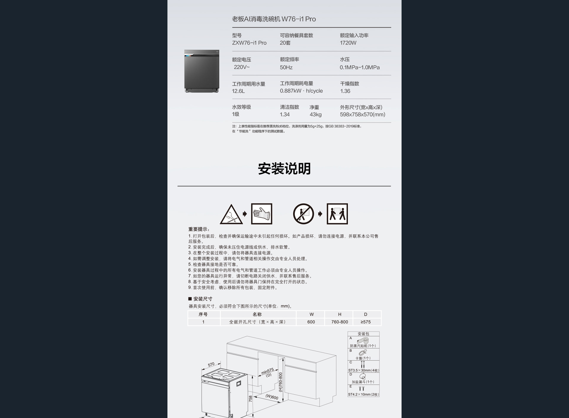 老板AI消毒洗碗机W76-i1 Pro